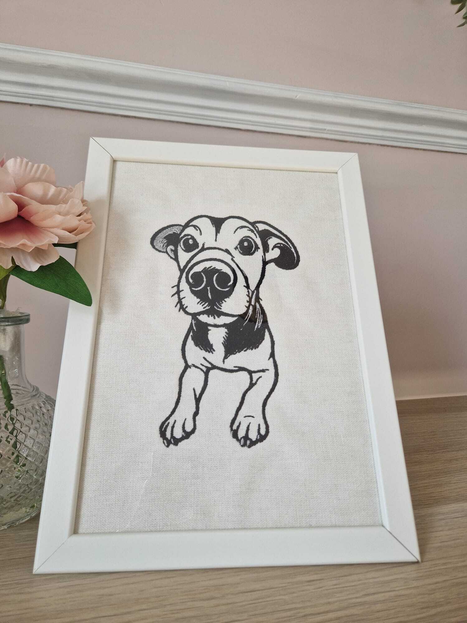 Beautiful handmade thread-art pet portraits in elegant frames.White color
